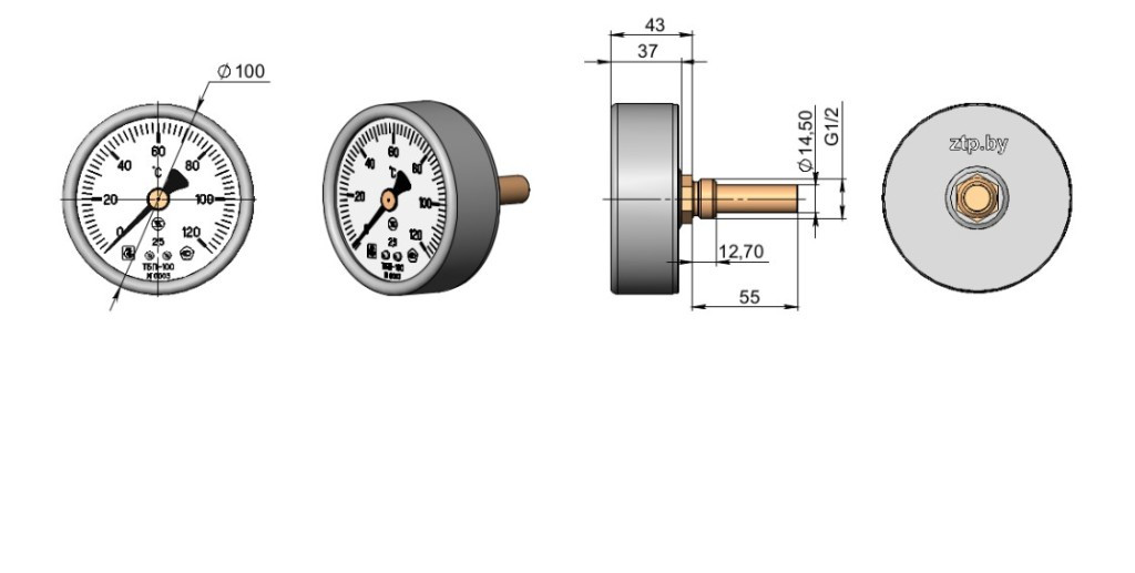 | Параметр | Термометр ТБП 100/100мм/Т (0-160*С) |